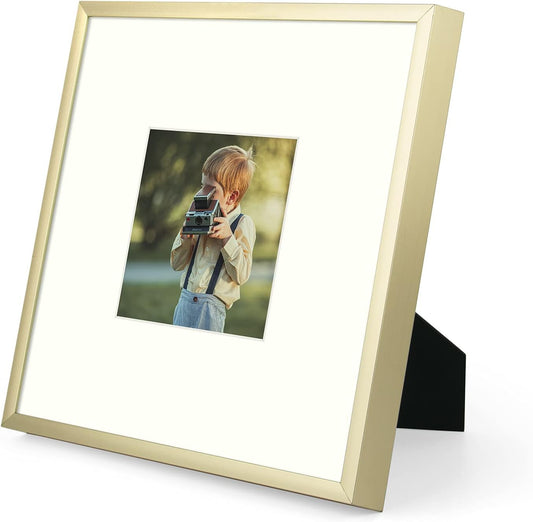 , 8X8 Gold Aluminum Picture Frame - Set of 1 - Ideal for Displaying 4X4 Photos with Mat or 8X8 wi...